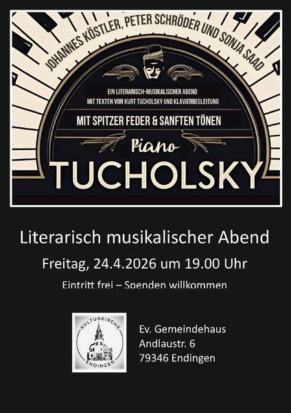 Ein literarisch-musikalischer Abend: Das Tucho Trio liest, spielt und singt Tucholsky. Die politisch-ernsten und leichten komischen Texte aus der damaligen Zeit zwischen den Weltkriegen werden leider wieder aktuell.